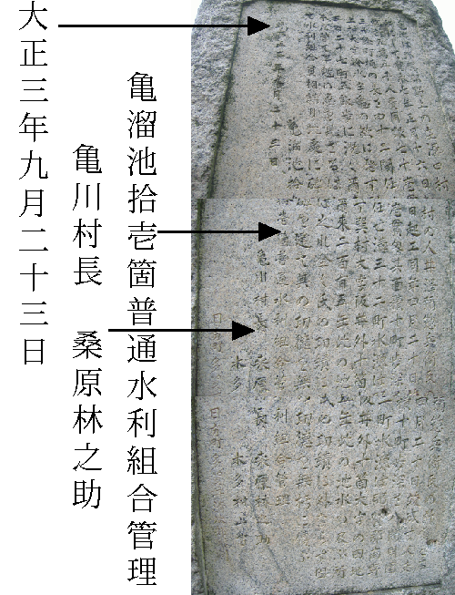 この亀池の水を、合わせて十一地区が田地に利用したんだね。