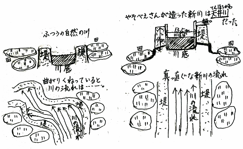 川の造りかえは、次のようにしたんだよ。