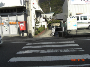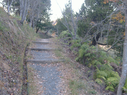 ↑この坂を登れば、T中学校の上にのびている道へ出る。